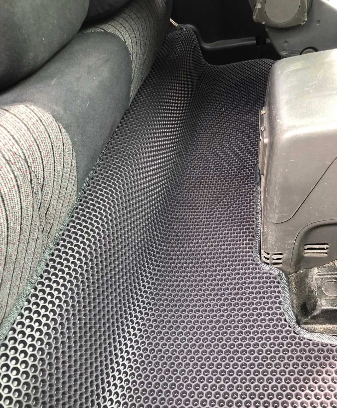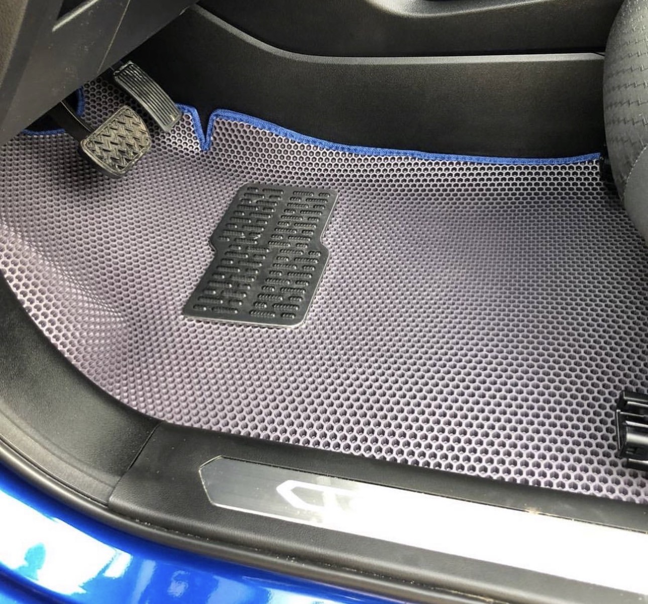 Коврики формуются и подгоняются так, чтобы не мешать педалям и не топорщиться по краям.