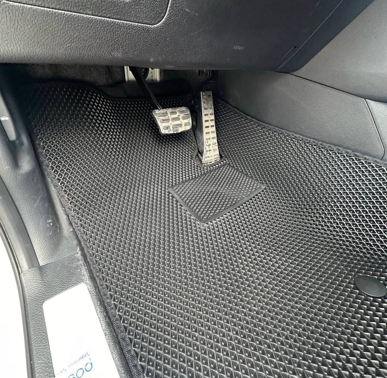 Коврики формуются и подгоняются так, чтобы не мешать педалям и не топорщиться по краям.