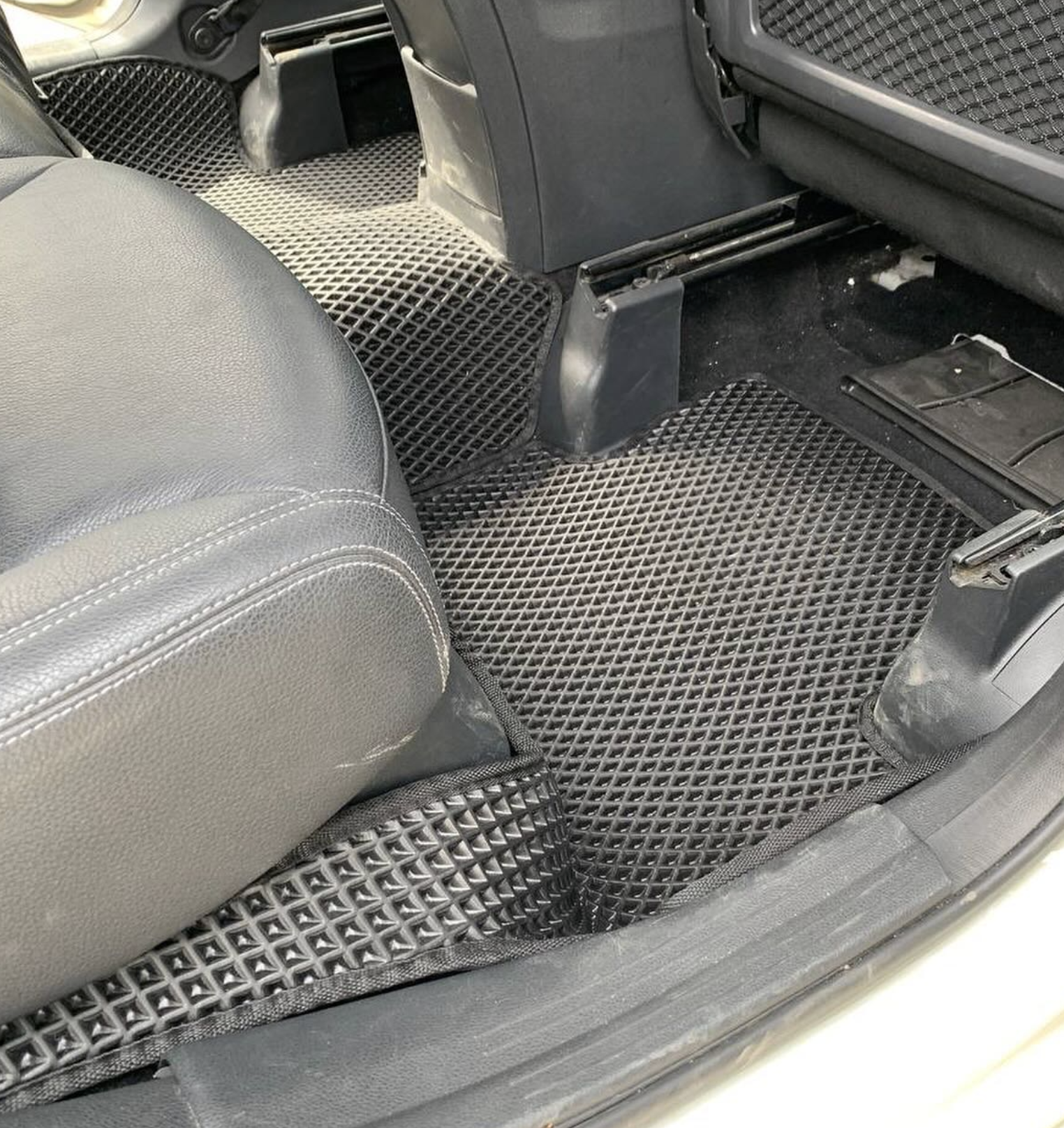 Точная подгонка: Коврики EVA изготавливаются по лекалам именно для Mercedes-Benz GLA 180. Формовка бортов выполняется на месте в Хабаровске — коврики плотно повторяют рельеф пола и не смещаются.