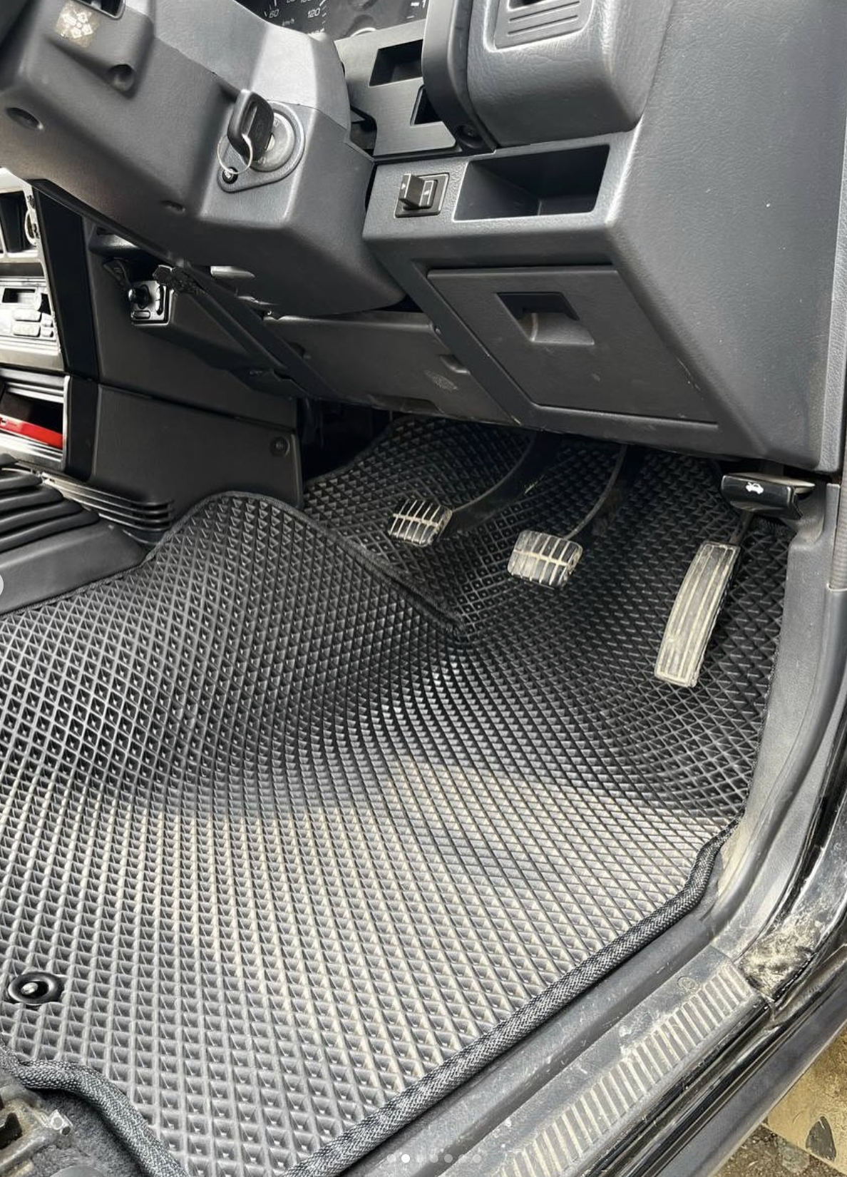 Комплект EVA для Nissan Terrano 21/1 поколение/1986-1995 (Ниссан Террано 21 1 Поколение 1986 1995) — подгонка по форме пола и фиксация, чтобы коврики не ездили.