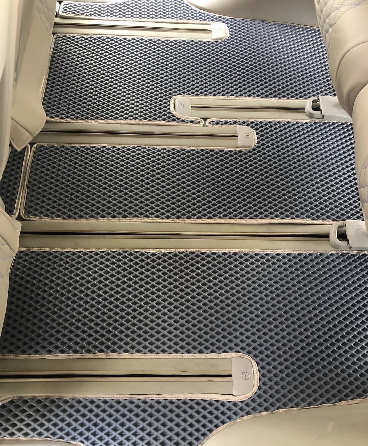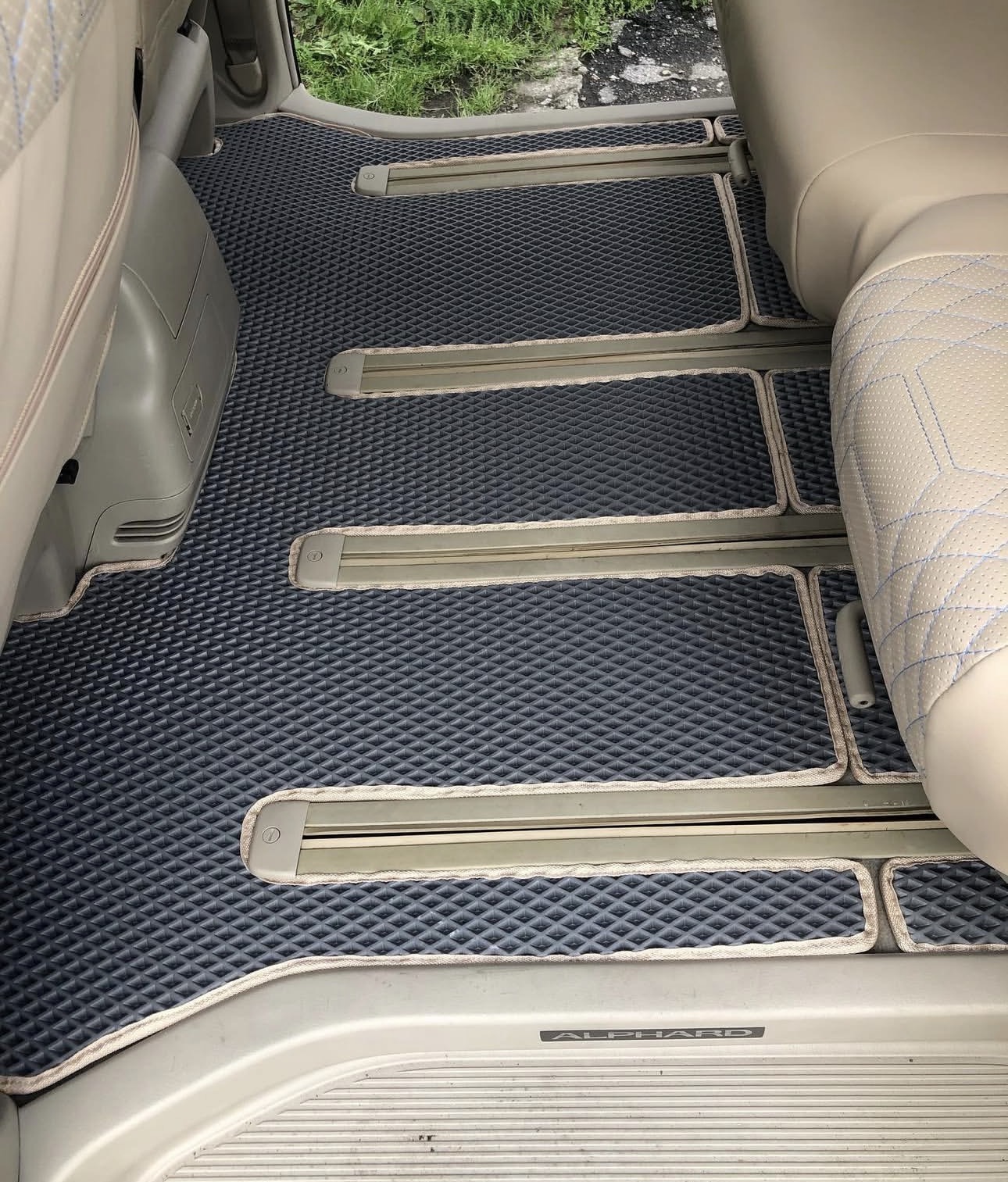 Комплект EVA для Toyota Alphard (H10) 05.2002 — 2008 1 поколение (Тойота Альфард H10 05.2002 — 2008 1 Поколение) — подгонка по форме пола и фиксация, чтобы коврики не ездили.