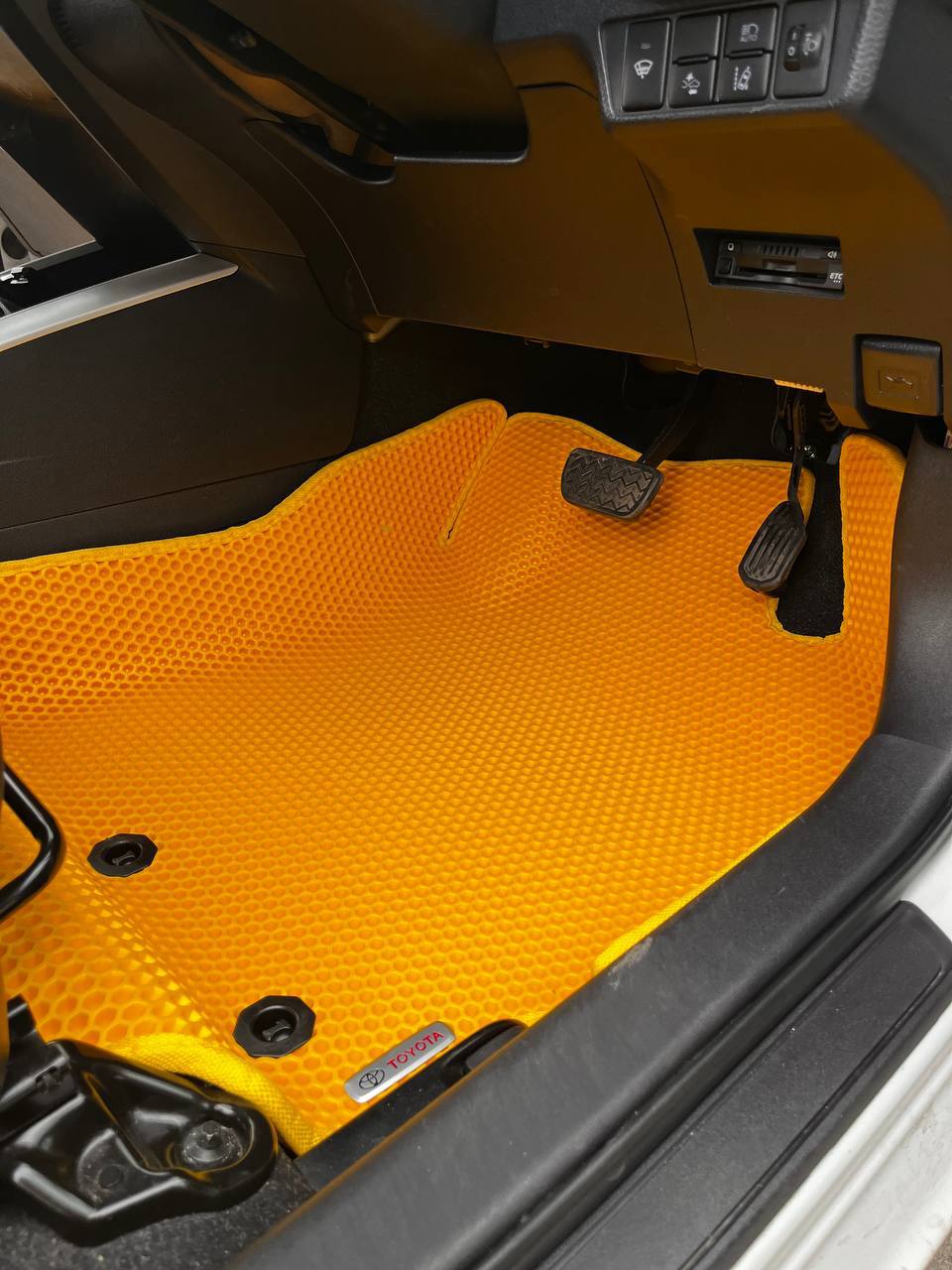 Коврики формуются и подгоняются так, чтобы не мешать педалям и не топорщиться по краям.