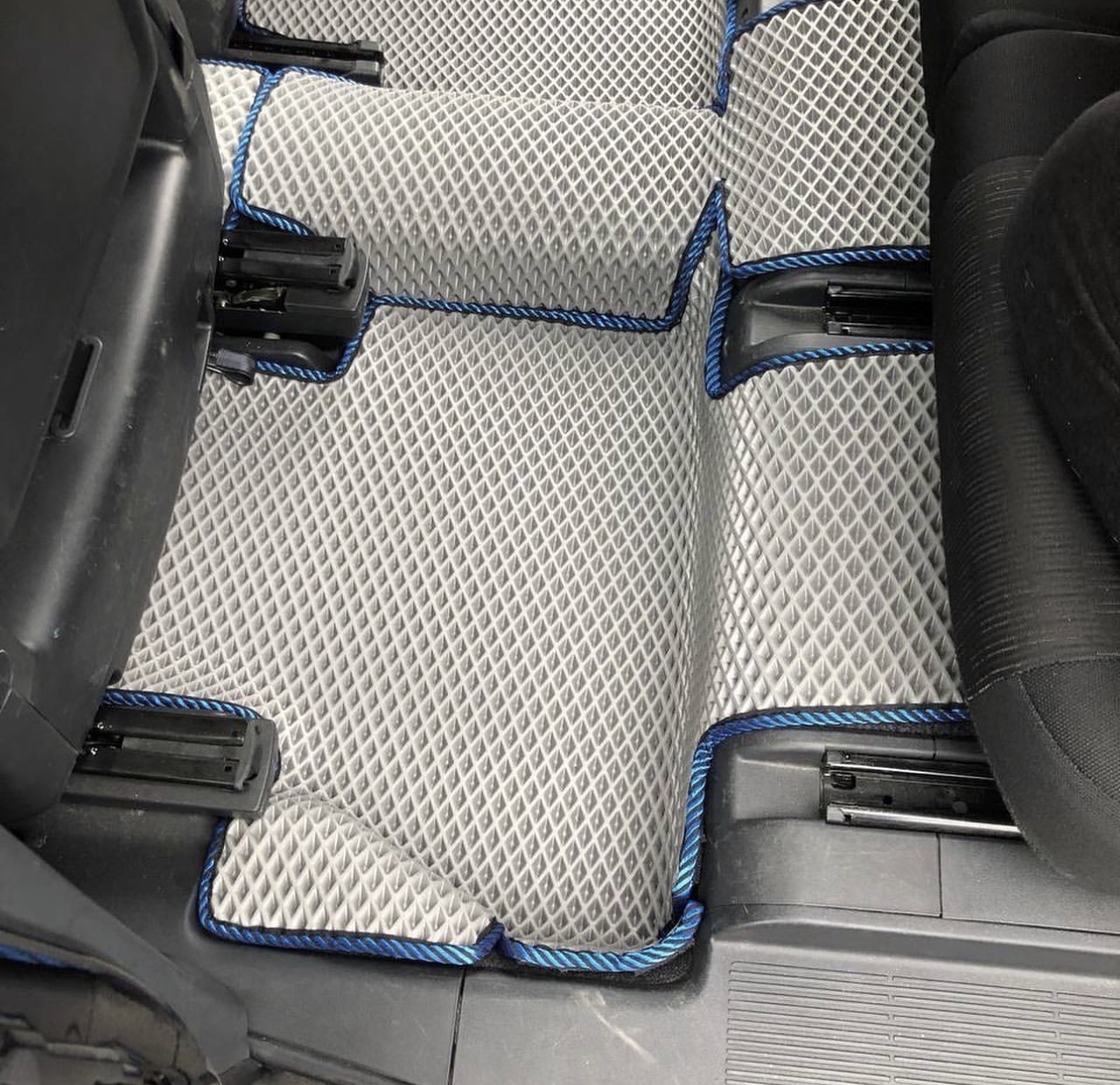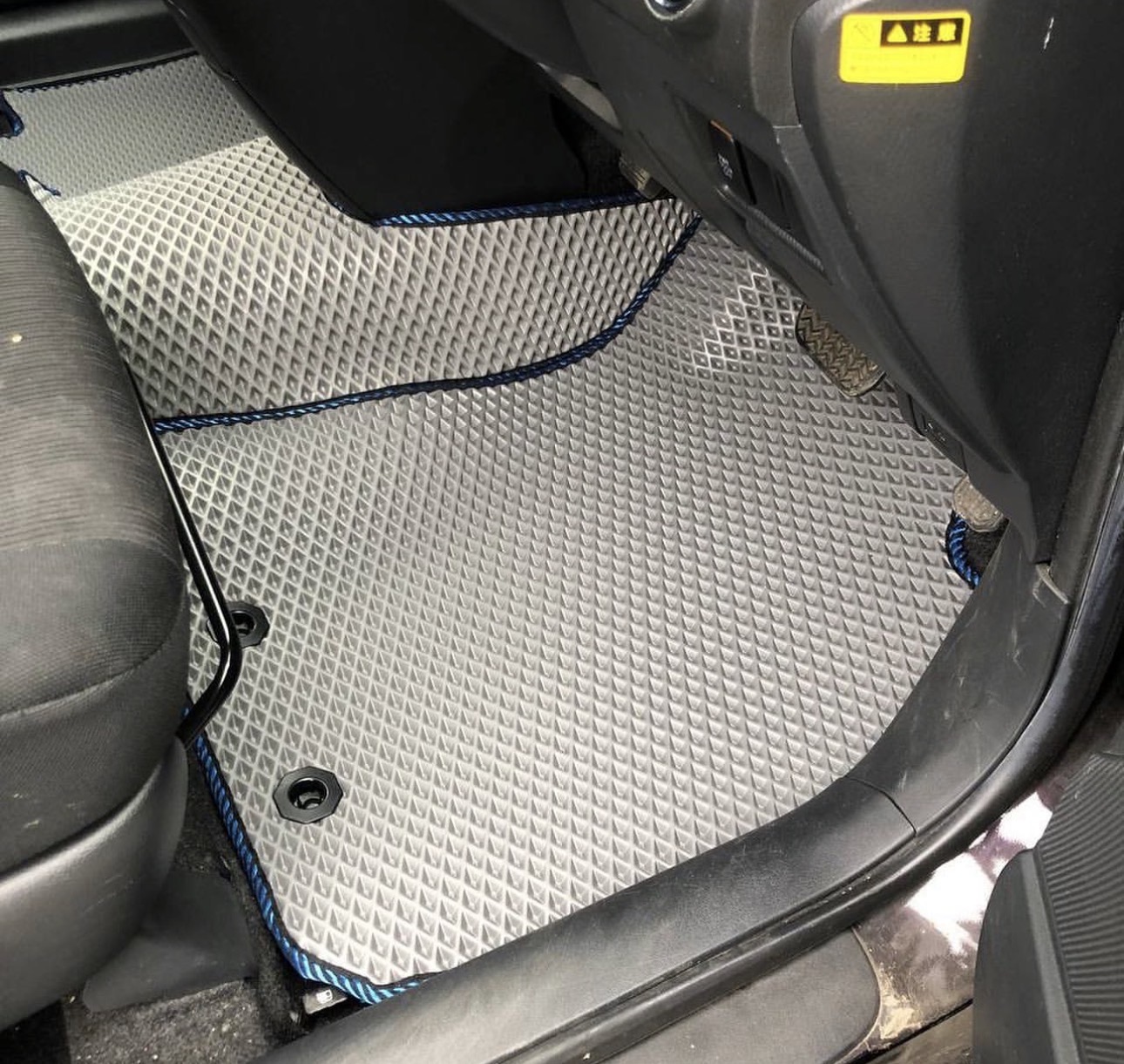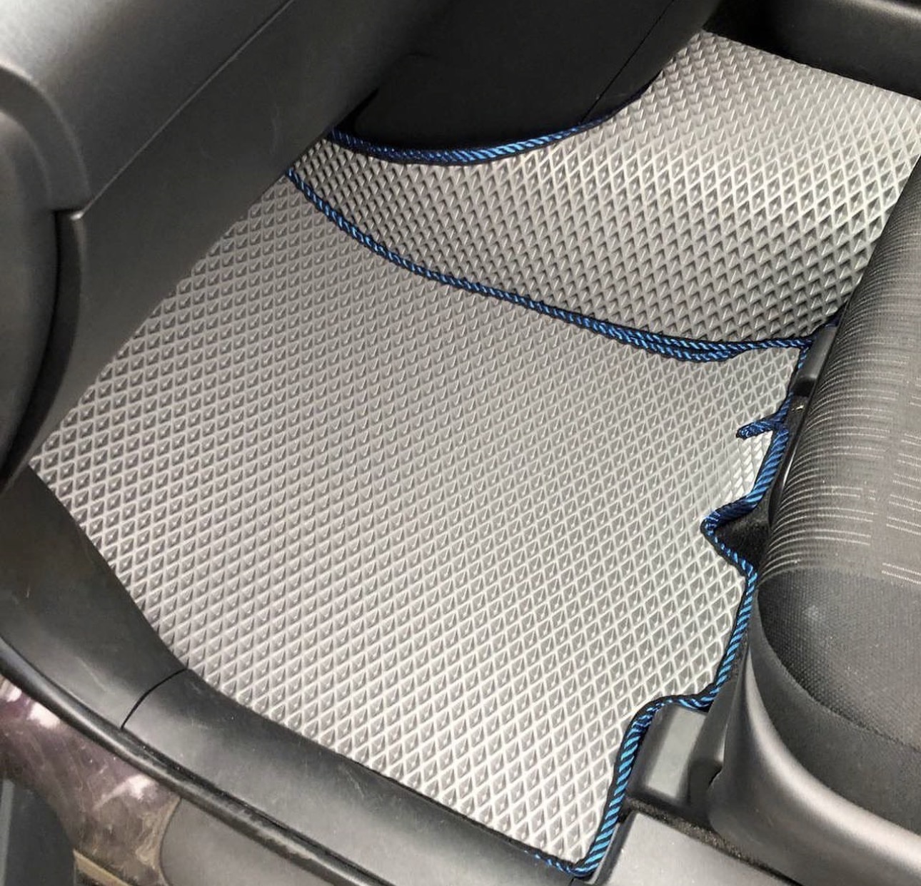 Коврики формуются и подгоняются так, чтобы не мешать педалям и не топорщиться по краям.